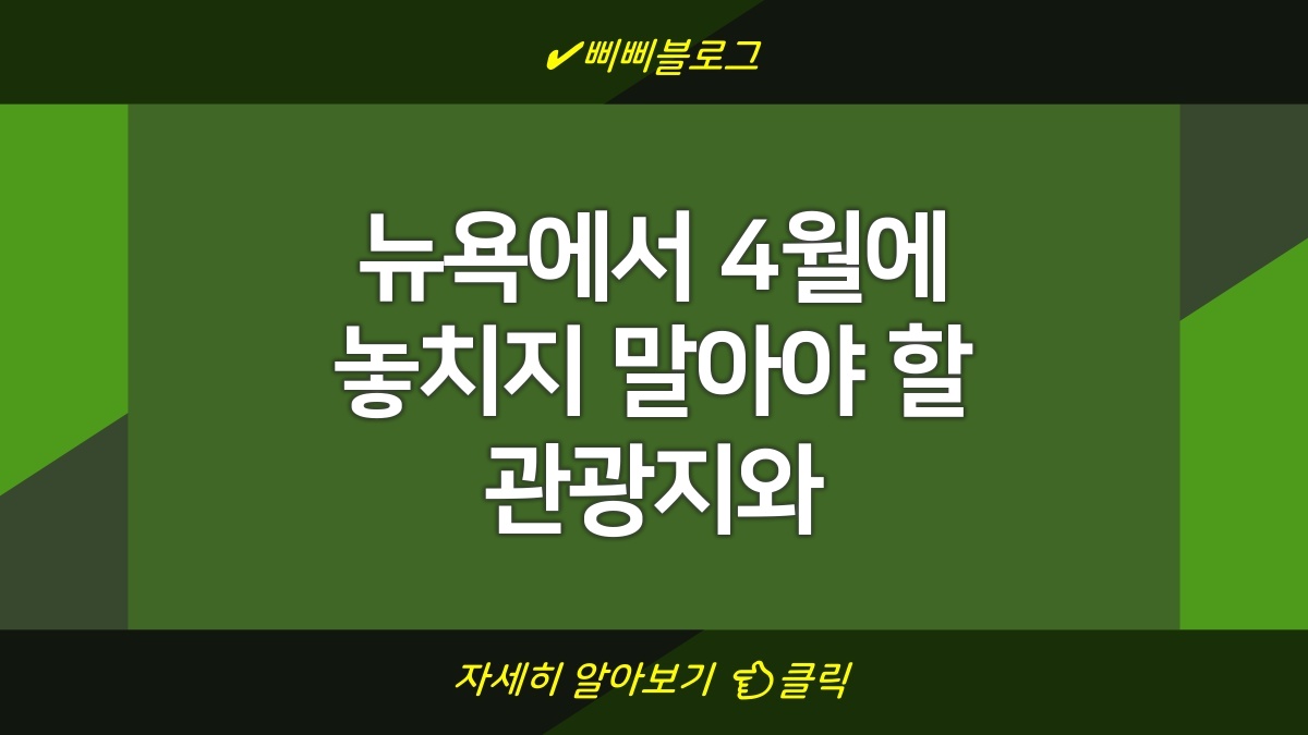 뉴욕의 4월은 만개한 꽃과 따뜻한 날씨로 관광에 최적의 시기입니다. 센트럴 파크는 봄철에 특히 아름다우며, 다양한 입장료가 없는 지역에서 피크닉이나 산책을 즐길 수 있습니다. 타임스 스퀘어는 언제나 사람들로 붐비지만, 4월에는 날씨가 좋아 더욱 활기찬 분위기를 느낄 수 있습니다. 또한, 브루클린 브릿지를 건너며 멋진 풍경을 사진에 담는 것도 추천합니다. 각 장소마다 저마다의 매력이 있으니 꼭 방문해보세요.