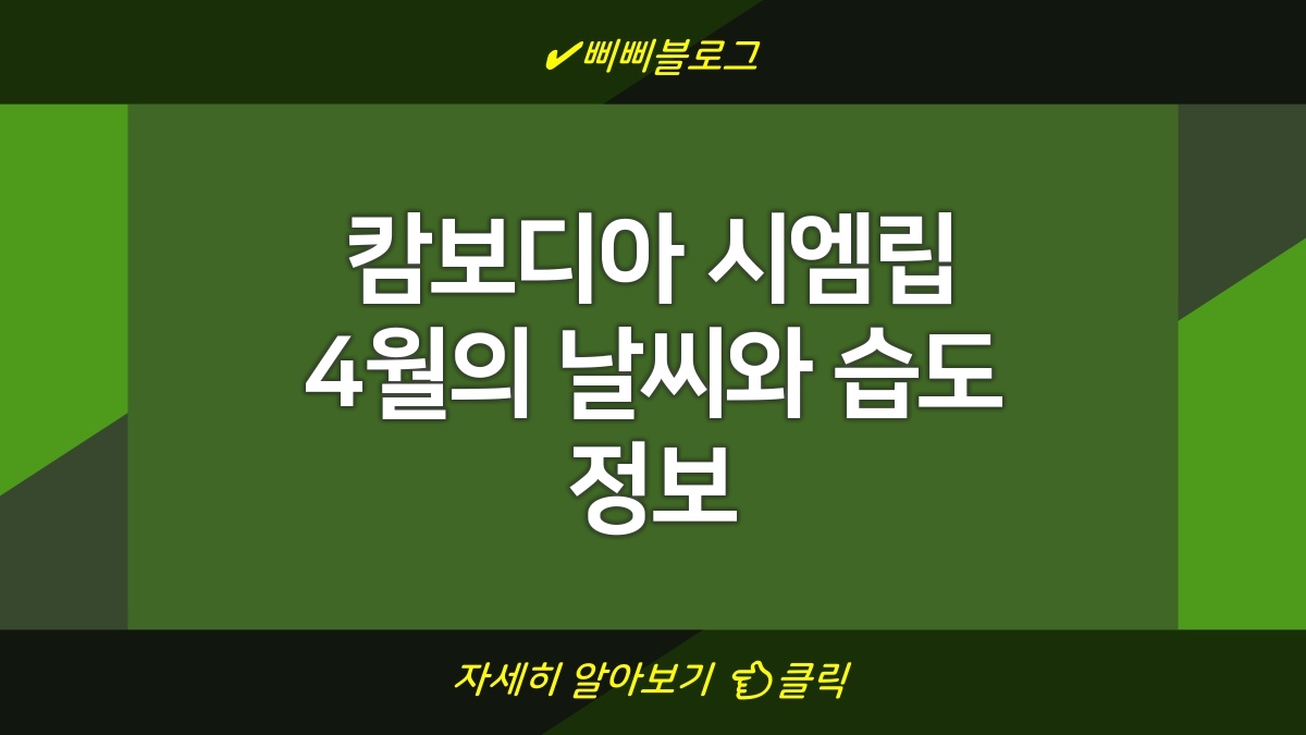 캄보디아 시엠립의 4월은 따뜻하고 습한 날씨가 특징입니다. 이런 기후적 요소들을 고려해서 적절한 옷차림과 활동 계획을 마련하면 더욱 편안하고 즐거운 여행이 될 것입니다. 이 정보가 여러분의 시엠립 여행에 도움이 되기를 바랍니다.