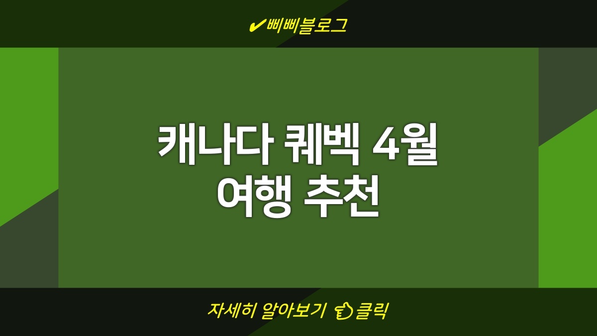 퀘벡은 4월 여행을 위한 완벽한 장소야. 역사적인 매력과 현대적인 문화가 어우러져서 다양한 경험을 제공하지. 도시의 관광지를 돌아다니며 맛있는 음식도 잊지 말고 즐기고. 여행 준비를 철저히 해 가는 것도 잊지 말고, 언제나 열린 마음으로 즐거움을 찾아야 해. 믿기지 않을 만큼 멋진 순간들이 기다리고 있을 거야. 여행이 끝난 뒤에도 마음속에 오래 남는 기억을 만들 수 있기를 바라!