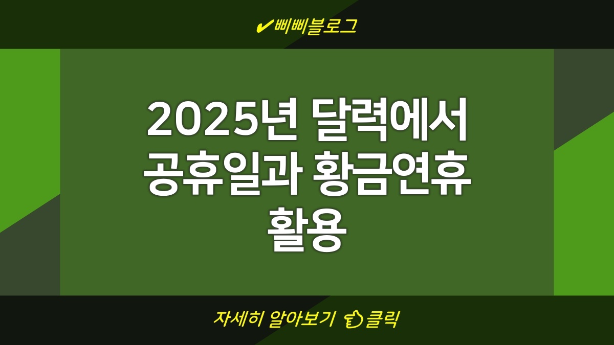 2025년 달력이 다가오고 있는데, 중요한 공휴일과 황금연휴 계획 세우는 게 꽤 중요함. 공휴일에 맞춰 여행이나 휴식을 고려하면 연차를 잘 쓸 수 있음. 황금연휴는 징검다리 연휴도 많아서 계획을 잘 세우면 최장 9일 연속으로 쉴 수도 있음. 연차 사용 꿀팁도 궁금할 거고, 특히 미리 준비하면 더 알차게 쓸 수 있음. 이 글에서는 2025년의 공휴일 상황과 연차 사용 노하우를 알려줄게.