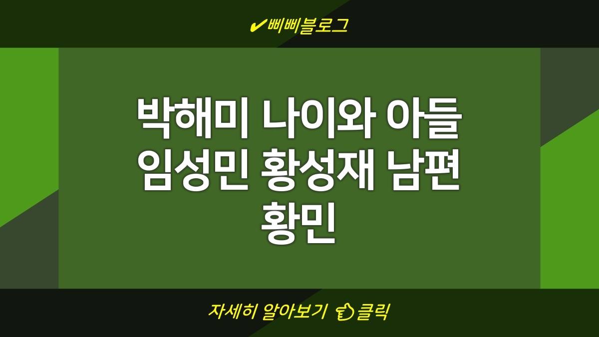 박해미는 아들 임성민과 황성재를 두고 있어. 자녀에 대한 애정이 남다르고, 그들과 함께 하는 모습이 자주 보인다고 해. 남편 황민과의 관계도 주목받고 있지만, 개인적인 사정으로 인해 여러 어려움이 있었던 것 같다. 특히 황민과의 결혼 생활은 대중의 많은 관심을 받고 있어. 이혼 후 변화된 삶도 많은 이야깃거리가 되고 있지.