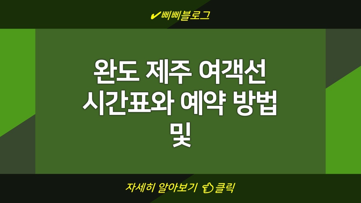완도에서 제주로 가는 여객선은 여행객들한테 인기가 많다. 여객선 시간표는 일정에 따라 다르니까 미리 확인하는 게 좋다. 예약 방법도 편리해서 온라인으로 쉽게 할 수 있다. 요금은 성수기와 비수기에 따라 달라지니 예산을 잘 계획해야지. 여행 준비하면서 시간표와 요금 체크하는 게 정말 중요하다.