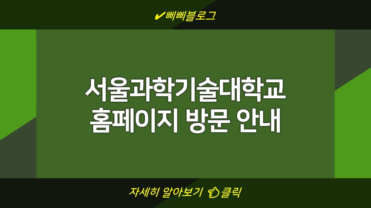 서울과학기술대학교 홈페이지는 여러 가지 정보를 한 곳에서 쉽게 찾을 수 있게 해준다. 입학, 전공, 생활 정보, 그리고 각종 민원 서비스까지 모든 것이 다 있다. 이 모든 정보를 잘 활용하면 대학생활을 좀 더 편리하게 영위할 수 있다. 홈페이지에 자주 들러 필요한 정보를 체크해보는 것을 추천할게. 적극적으로 활용해서 유익한 경험을 쌓길 바람!