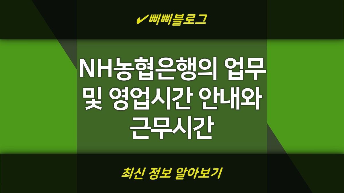 - 정확한 영업시간은 NH농협은행의 공식 채널을 통해 확인하는 것이 가장 좋습니다.