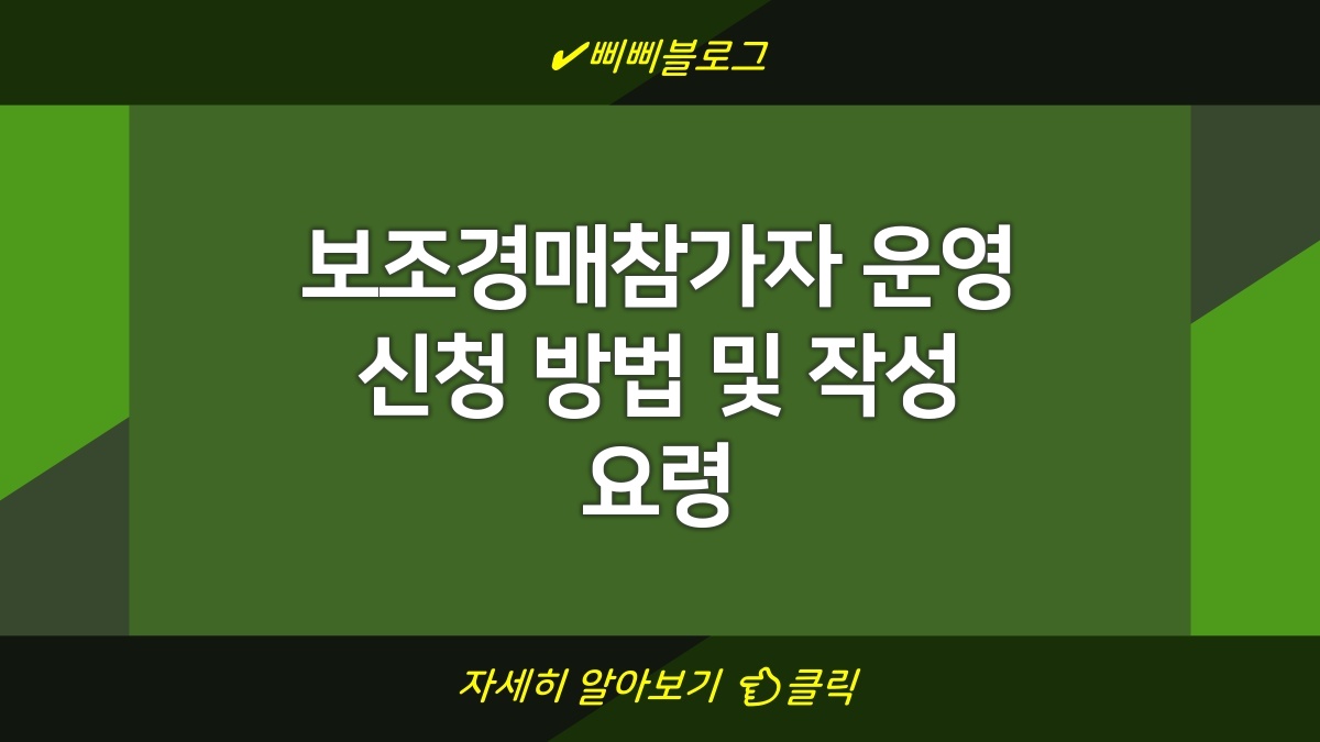 신청 자격은 보조경매참가자로 지정된 조건을 충족해야 함. 보통 소득 수준이나 사업에 대한 조건이 있을 수 있음. 이를 검토하고 신청서와 함께 제출해야 하는 서류를 점검하길 바람. 추가적으로, 온라인으로 신청할 수 있어서 클릭 몇 번으로 절차를 진행할 수 있음. 다만, 모든 서류를 잊지 않고 제출해야지 아무 문제가 없을 거임. 신청할 때 주의할 점은 정확한 정보 입력임.